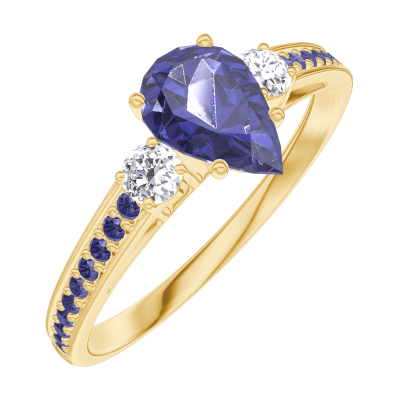 « L'ATELIER » Nº164033Anillo Oro amarillo 18 quilates - Zafiro azul Pera 0.5 quilates - Piedras laterales Diamante - Engastado Zafiro azul