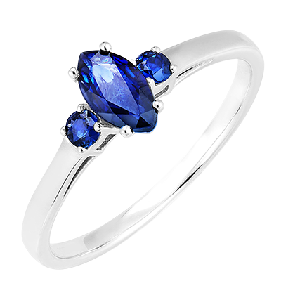 « L'ATELIER » Nº164164Anillo Oro blanco 9 quilates - Zafiro azul Marquesa 0.5 quilates - Piedras laterales Zafiro azul