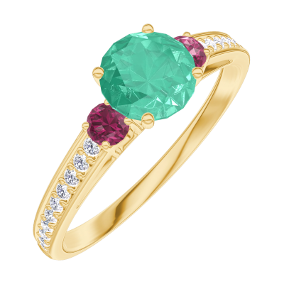 « L'ATELIER » Nº164246Anillo Oro amarillo 9 quilates - Esmeralda redondo 0.5 quilates - Piedras laterales Rubí - Engastado Diamante 4.5