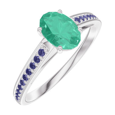 Anillo Oro blanco 18 quilates - Esmeralda Ovalo 0.5 quilates - Engastado Zafiro azul