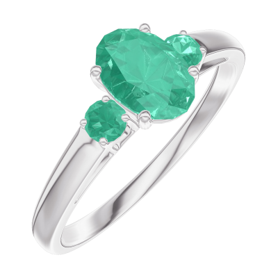 « L'ATELIER » N.º 164583Anillo Oro blanco 18 quilates - Esmeralda Ovalo 0.5 quilates - Piedras laterales Esmeralda