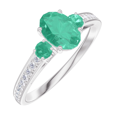 « L'ATELIER » Nº164587Anillo Oro blanco 18 quilates - Esmeralda Ovalo 0.5 quilates - Piedras laterales Esmeralda - Engastado Diamante