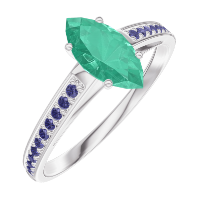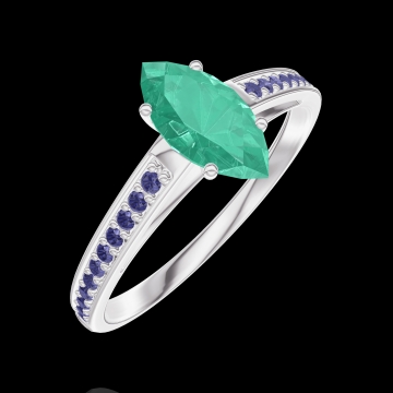 Anillo Oro blanco 18 quilates - Esmeralda Marquesa 0.5 quilates - Engastado Zafiro azul
