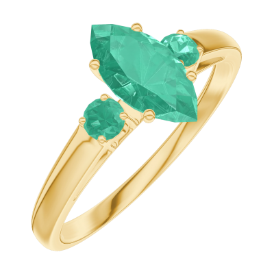 « L'ATELIER » N.º 164782Anillo Oro amarillo 9 quilates - Esmeralda Marquesa 0.5 quilates - Piedras laterales Esmeralda