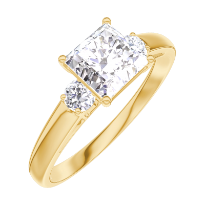 « L'ATELIER » Nº164922Anillo Oro amarillo 9 quilates - Diamante Princesa 0.7 quilates - Piedras laterales Diamante