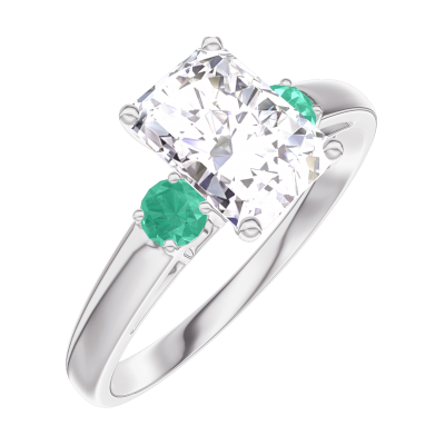 « L'ATELIER » N.º 165083Anillo Oro blanco 18 quilates - Diamante Rectángulo 0.7 quilates - Piedras laterales Esmeralda