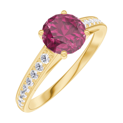 « L'ATELIER » N.º 165406Anillo Oro amarillo 9 quilates - Rubí redondo 0.7 quilates - Engastado Diamante 4.9