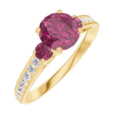 « L'ATELIER » N.º 165446Anillo Oro amarillo 9 quilates - Rubí redondo 0.7 quilates - Piedras laterales Rubí - Engastado Diamante 4.9