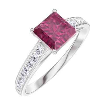 « L'ATELIER » N.º 165507Anillo Oro blanco 18 quilates - Rubí Princesa 0.7 quilates - Engastado Diamante