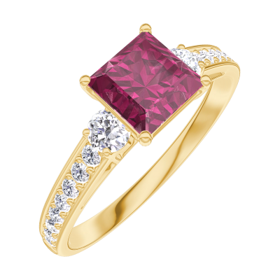 « L'ATELIER » N.º 165526Anillo Oro amarillo 9 quilates - Rubí Princesa 0.7 quilates - Piedras laterales Diamante - Engastado Diamante