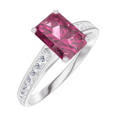 « L'ATELIER » N.º 165607Anillo Oro blanco 18 quilates - Rubí Rectángulo 0.7 quilates - Engastado Diamante