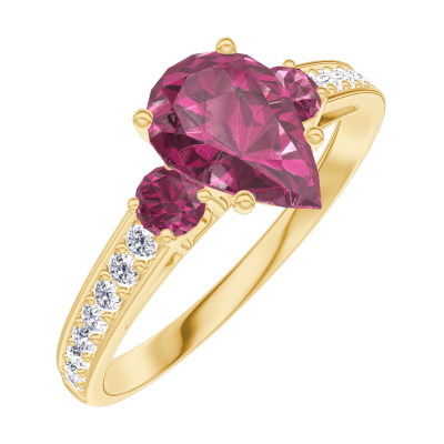 « L'ATELIER » N.º 165846Anillo Oro amarillo 9 quilates - Rubí Pera 0.7 quilates - Piedras laterales Rubí - Engastado Diamante