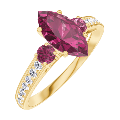 « L'ATELIER » N.º 165946Anillo Oro amarillo 9 quilates - Rubí Marquesa 0.7 quilates - Piedras laterales Rubí - Engastado Diamante