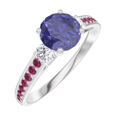 « L'ATELIER » N.º 166032Anillo Oro blanco 9 quilates - Zafiro azul redondo 0.7 quilates - Piedras laterales Diamante - Engastado Rubí 4.9 (7)