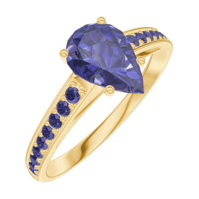 « L'ATELIER » N.º 166414Anillo Oro amarillo 9 quilates - Zafiro azul Pera 0.7 quilates - Engastado Zafiro azul