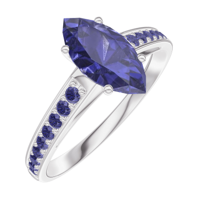 « L'ATELIER » N.º 166516Anillo Oro blanco 9 quilates - Zafiro azul Marquesa 0.7 quilates - Engastado Zafiro azul