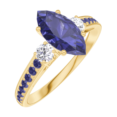 « L'ATELIER » Nº166534Anillo Oro amarillo 9 quilates - Zafiro azul Marquesa 0.7 quilates - Piedras laterales Diamante - Engastado Zafiro azul
