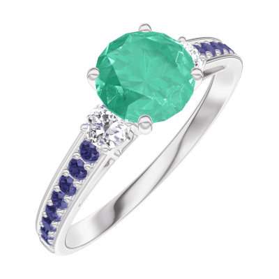 « L'ATELIER » N.º 166635Anillo Oro blanco 18 quilates - Esmeralda redondo 0.7 quilates - Piedras laterales Diamante - Engastado Zafiro azul 4.9
