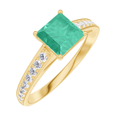 « L'ATELIER » N.º 166705Anillo Oro amarillo 18 quilates - Esmeralda Princesa 0.7 quilates - Engastado Diamante