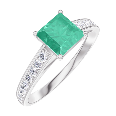 « L'ATELIER » Nº166707Anillo Oro blanco 18 quilates - Esmeralda Princesa 0.7 quilates - Engastado Diamante