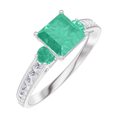 « L'ATELIER » N.º 166788Anillo Oro blanco 9 quilates - Esmeralda Princesa 0.7 quilates - Piedras laterales Esmeralda - Engastado Diamante