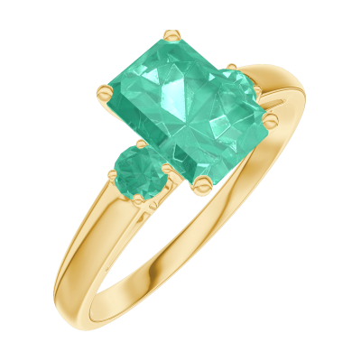 « L'ATELIER » Nº166882Anillo Oro amarillo 9 quilates - Esmeralda Rectángulo 0.7 quilates - Piedras laterales Esmeralda