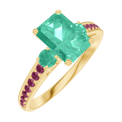 « L'ATELIER » N.º 166890Anillo Oro amarillo 9 quilates - Esmeralda Rectángulo 0.7 quilates - Piedras laterales Esmeralda - Engastado Rubí