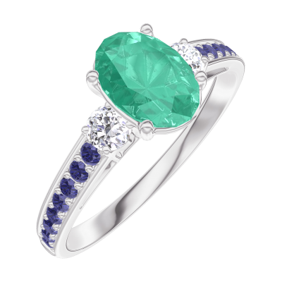 « L'ATELIER » Nº166935Anillo Oro blanco 18 quilates - Esmeralda Ovalo 0.7 quilates - Piedras laterales Diamante - Engastado Zafiro azul