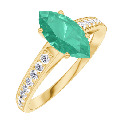 « L'ATELIER » N.º 167105Anillo Oro amarillo 18 quilates - Esmeralda Marquesa 0.7 quilates - Engastado Diamante