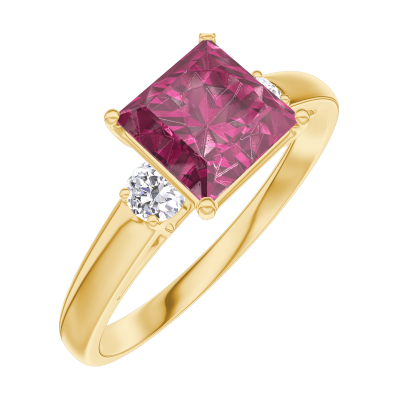 « L'ATELIER » N.º 167922Anillo Oro amarillo 9 quilates - Rubí Princesa 1 quilates - Piedras laterales Diamante