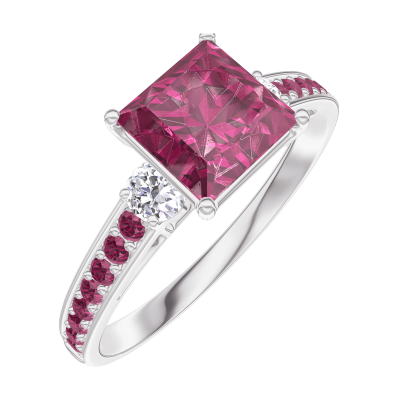 « L'ATELIER » N.º 167932Anillo Oro blanco 9 quilates - Rubí Princesa 1 quilates - Piedras laterales Diamante - Engastado Rubí