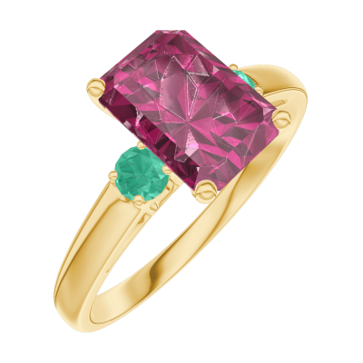 « L'ATELIER » N.º 168081Anillo Oro amarillo 18 quilates - Rubí Rectángulo 1 quilates - Piedras laterales Esmeralda 4.6