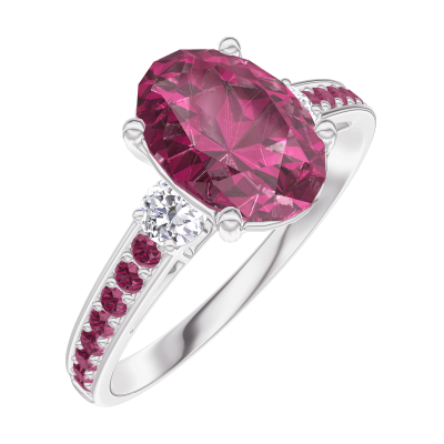 « L'ATELIER » N.º 168131Anillo Oro blanco 18 quilates - Rubí Ovalo 1 quilates - Piedras laterales Diamante - Engastado Rubí 4.7