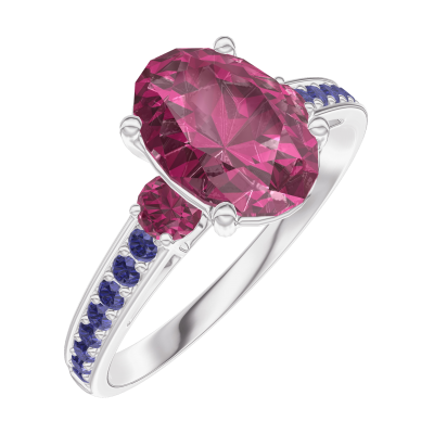 « L'ATELIER » N.º 168156Anillo Oro blanco 9 quilates - Rubí Ovalo 1 quilates - Piedras laterales Rubí - Engastado Zafiro azul 4.7