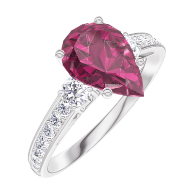« L'ATELIER » Nº168227Anillo Oro blanco 18 quilates - Rubí Pera 1 quilates - Piedras laterales Diamante - Engastado Diamante