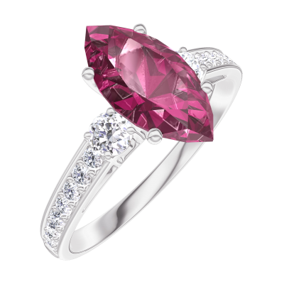 « L'ATELIER » N.º 168327Anillo Oro blanco 18 quilates - Rubí Marquesa 1 quilates - Piedras laterales Diamante - Engastado Diamante