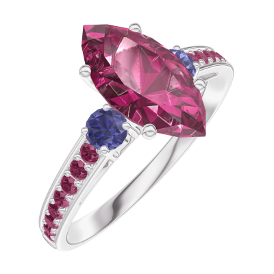 « L'ATELIER » N.º 168372Anillo Oro blanco 9 quilates - Rubí Marquesa 1 quilates - Piedras laterales Zafiro azul - Engastado Rubí