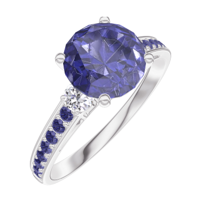 « L'ATELIER » N.º 168436Anillo Oro blanco 9 quilates - Zafiro azul redondo 1 quilates - Piedras laterales Diamante - Engastado Zafiro azul 4.8