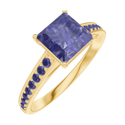 « L'ATELIER » N.º 168514Anillo Oro amarillo 9 quilates - Zafiro azul Princesa 1 quilates - Engastado Zafiro azul