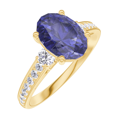 « L'ATELIER » N.º 168725Anillo Oro amarillo 18 quilates - Zafiro azul Ovalo 1 quilates - Piedras laterales Diamante - Engastado Diamante 4.7