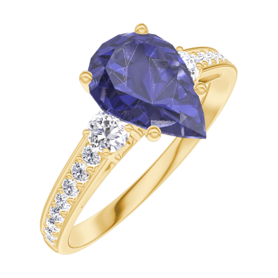 « L'ATELIER » N.º 168826Anillo Oro amarillo 9 quilates - Zafiro azul Pera 1 quilates - Piedras laterales Diamante - Engastado Diamante