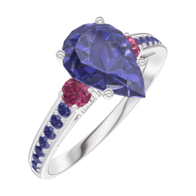 « L'ATELIER » Nº168856Anillo Oro blanco 9 quilates - Zafiro azul Pera 1 quilates - Piedras laterales Rubí - Engastado Zafiro azul