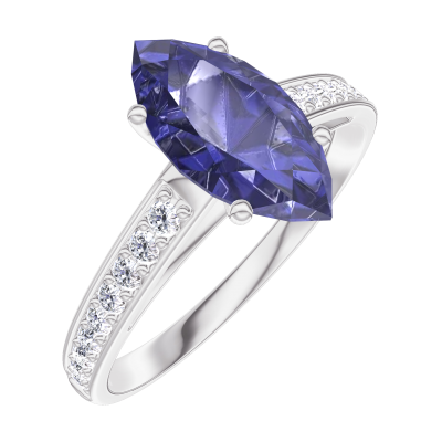 « L'ATELIER » N.º 168907Anillo Oro blanco 18 quilates - Zafiro azul Marquesa 1 quilates - Engastado Diamante