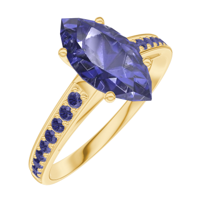 « L'ATELIER » Nº168914Anillo Oro amarillo 9 quilates - Zafiro azul Marquesa 1 quilates - Engastado Zafiro azul