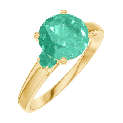« L'ATELIER » N.º 169082Anillo Oro amarillo 9 quilates - Esmeralda redondo 1 quilates - Piedras laterales Esmeralda 4.8