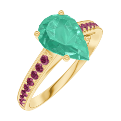 Anillo Oro amarillo 18 quilates - Esmeralda Pera 1 quilates - Engastado Rubí
