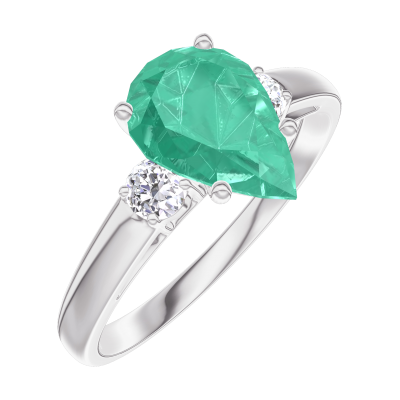 « L'ATELIER » Nº169424Anillo Oro blanco 9 quilates - Esmeralda Pera 1 quilates - Piedras laterales Diamante
