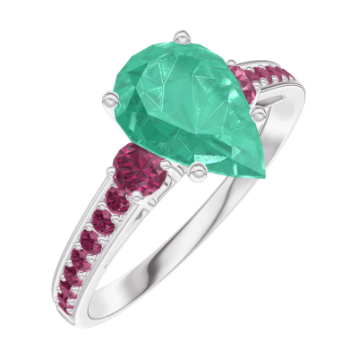 « L'ATELIER » N.º 169451Anillo Oro blanco 18 quilates - Esmeralda Pera 1 quilates - Piedras laterales Rubí - Engastado Rubí
