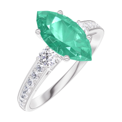 Anillo Oro blanco 18 quilates - Esmeralda Marquesa 1 quilates - Piedras laterales Diamante - Engastado Diamante