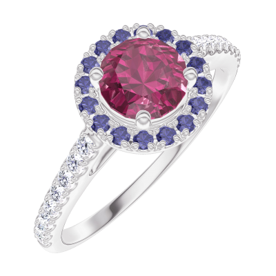 « L'ATELIER » N.º 170328Anillo Oro blanco 9 quilates - Rubí redondo 0.5 quilates - Halo Zafiro azul - Engastado Diamante 4.7